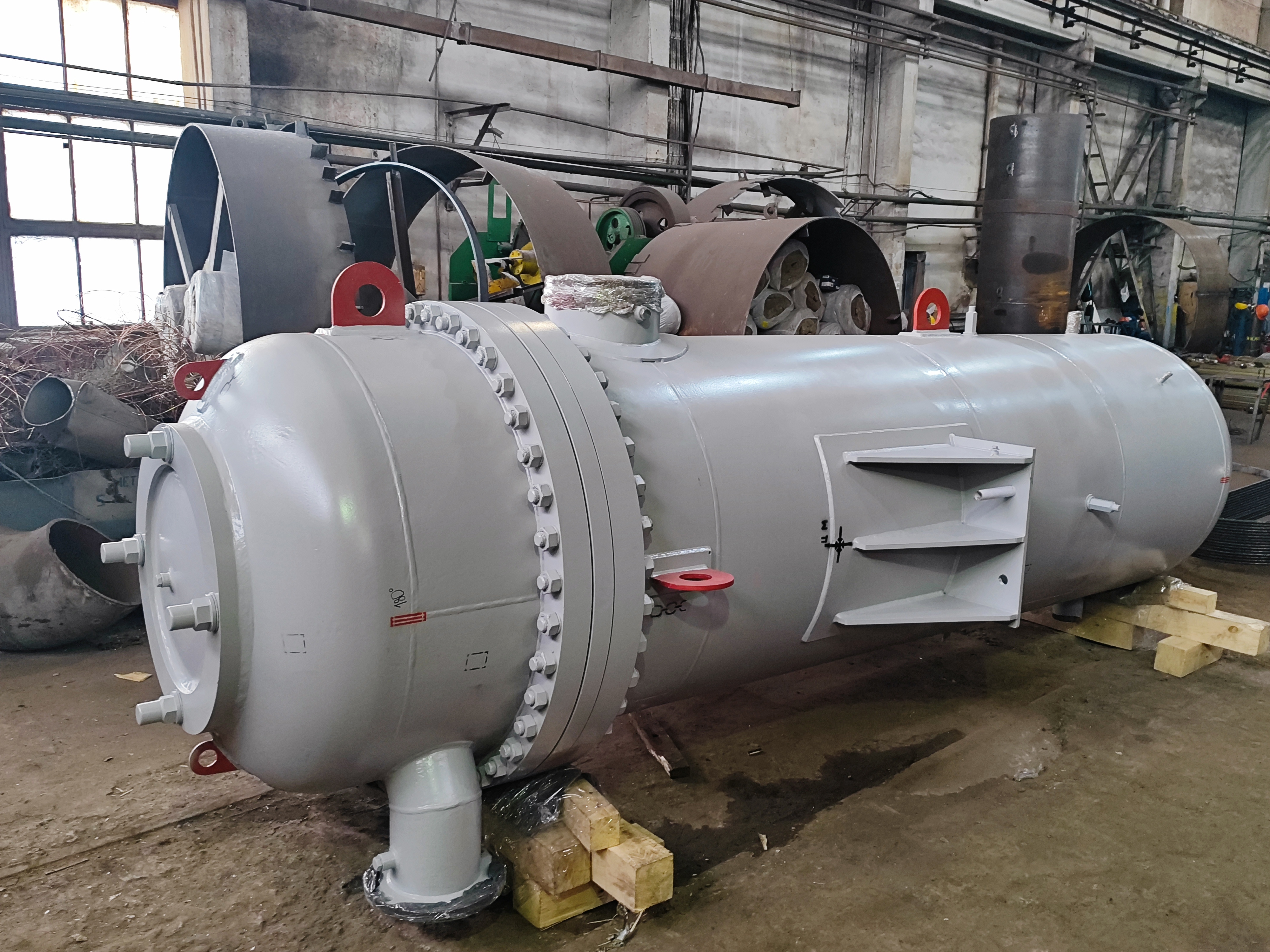 Данные подогреватели выпускаются в двух типовых исполнениях: с эллиптическими (ПП1) и плоскими днищами (ПП2). Каждый подогреватель устанавливается на двух опорах. В трубной системе имеется несколько промежуточных перегородок, которые являются одновременно опорами для трубок пучка и задают определенное направление движения пара в пучке, приближая его к поперечному.